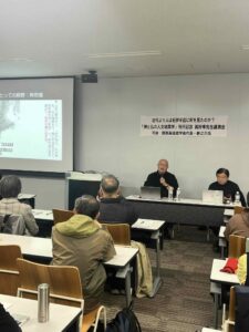 3月13日(金)大阪工大梅田キャンパスで「神と仏の人文地質学」刊行記念トークショーが行われました。主催は紀伊國屋書店梅田本店。 トークショーの司会は「関西高低差学会」代表の新之介さん。「高低差散歩」シリーズの著作やブラタモリの案内人も務めた関西地質界隈では名の知れた存在。 巽所長の「人文地質学」の内容に沿ったレクチャーも密度が高かったのですが続く新之介さんとの対談も地質愛に溢れる楽しいものでした。またそれ以上に質疑応答での聴講者の質問のレベルが高くかったことも印象的でした。
